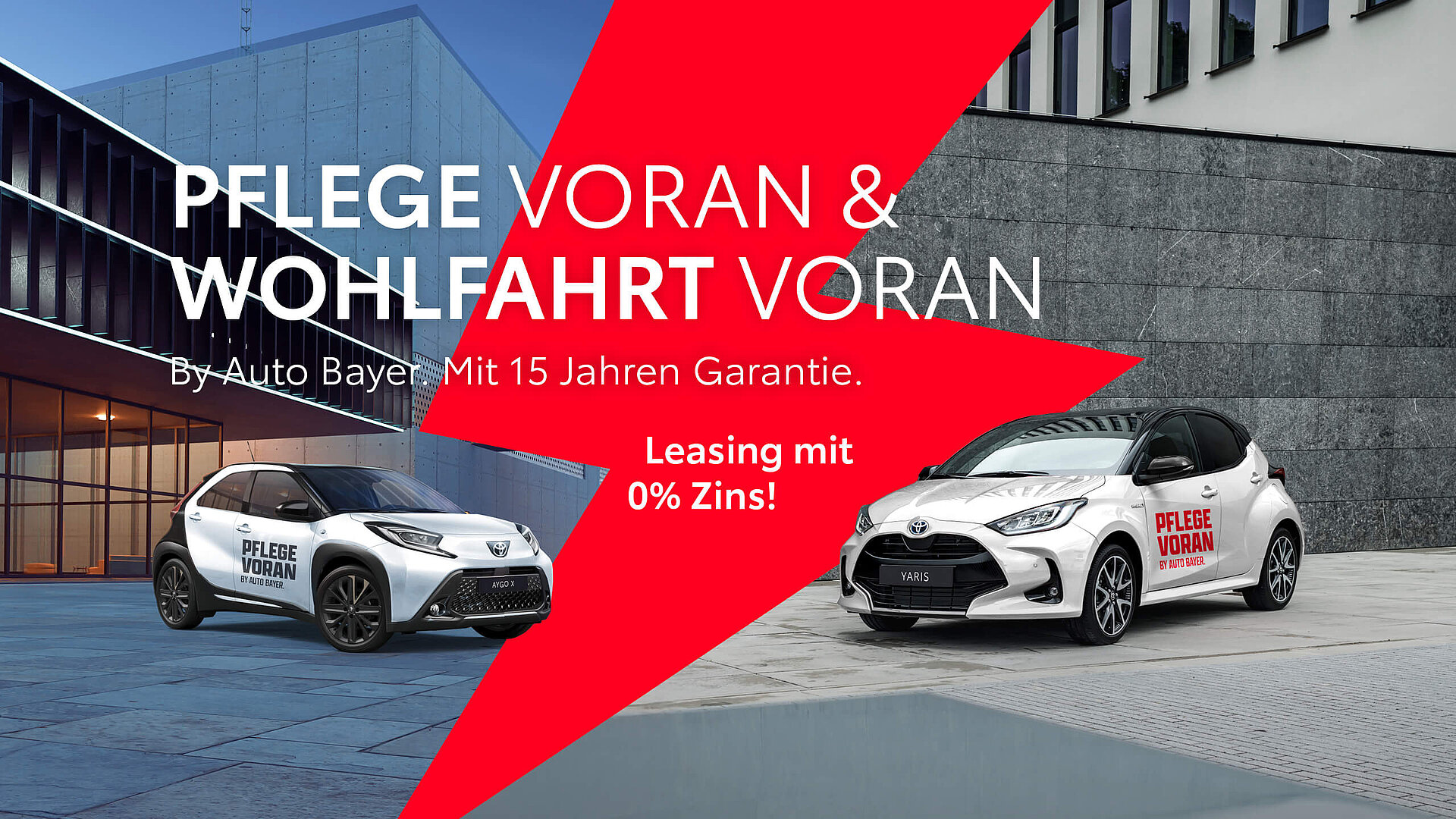 Mit unserer Kampagne „Pflege VORAN & Wohlfahrt VORAN“ unterstützen wir Wohlfahrtsverbände, soziale Einrichtungen und Pflegedienste dabei, mobil und flexibel zu bleiben – und das zu besonders attraktiven Leasingangeboten, natürlich ohne Anzahlung und mit 0% Zins.